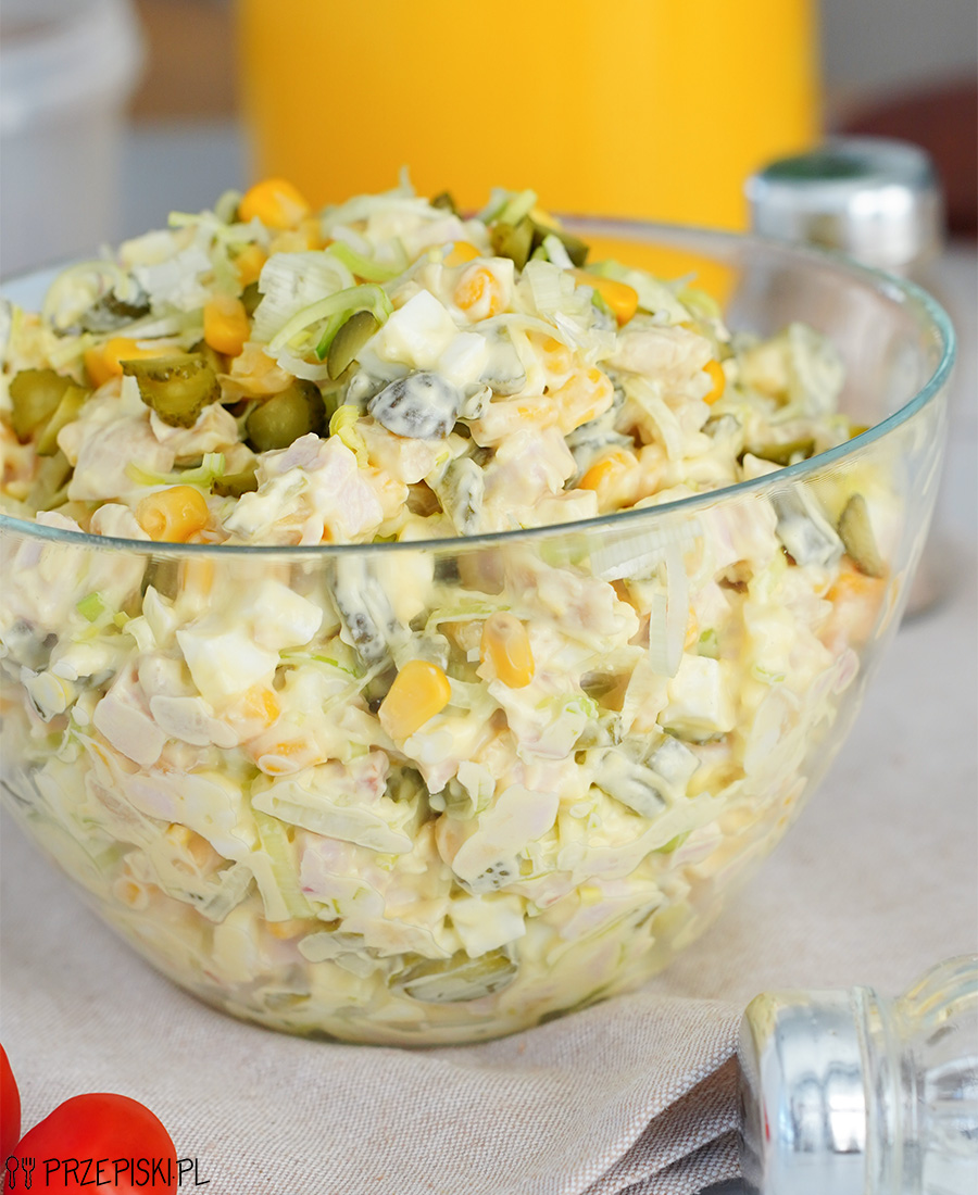 Smaczna, sycąca i łatwa w przygotowaniu sałatka z szynką, jajkiem i porem, którą przygotujecie w kilka chwil. Sałatkę robi się błyskawicznie z kilku prostych i łatwo dostępnych składników. Świetnie sprawdzi się w czasie wizyty niezapowiedzianych gości lub po prostu na kolację. Można ją również zabrać ze sobą na wynos i zjeść na drugie śniadanie w pracy lub szkole.