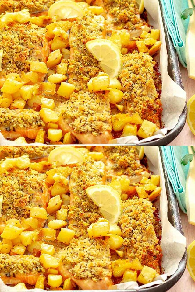 Steki z łososia i zapiekanki ziemniaczane