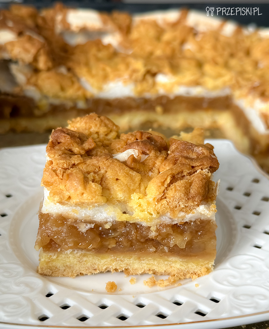 Najlepsza i najłatwiejsza w przygotowaniu szrlotka na dużą blachę. To prosty przepis na pyszne ciasto z jabłkami, które chyba każdy uwielbia. Trudno się powstrzymać od wyjadania go jeszcze ciepłego prosto z blachy. Delikatne, mięciutkie kruche ciasto w połączeniu z musem jabłkowym i delikatną bezową pianką smakuje naprawdę rewelacyjnie.