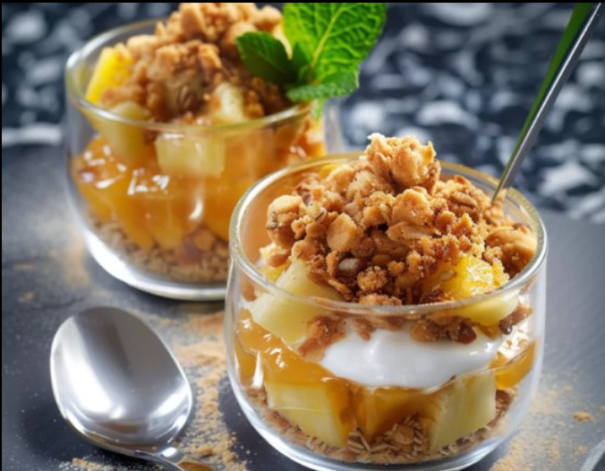 2. **Ananas:** W małym rondelku podgrzej ananas z miodem przez 5 minut, aż lekko zmięknie 🍍🍯.