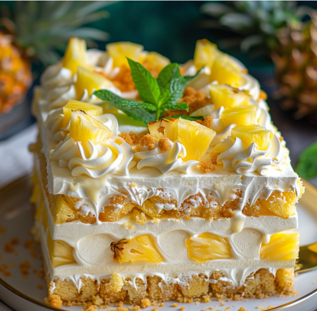 – Dodaj odsączonego rozdrobnionego ananasa oraz kawałki ananasa, mieszając delikatnie do połączenia.